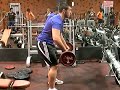 "De pie, rodillas ligeramente flexionadas, tronco inclinado a 45º, espalda bien recta, barra cogida en pronacion, manos separadas una distancia mayor a la anchura de los hombros, brazos colgando. Inspirar, efectuar un bloqueo respiratorio y una contracción isometrica de la banda abdominal, y tirar de la barra hasta el pecho. Volver a la posición inicial y espirar.